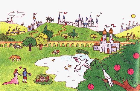 A meio do oceano havia um país lindo com árvores a cobrir grandes montanhas. Algumas destas eram tão grandes que pareciam chegar ao céu.