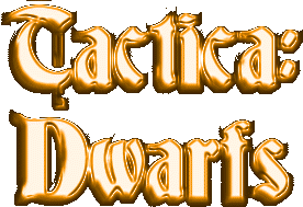 In general, I like to use a good defensive position that allows my war machines and missile troops to weaken and/or destroy the enemy before he can become engaged with my troops. The Dwarfs are not a mobile army, and they are forced to fight a defensive battle. You must keep a cohesive line, not allowing any breaks, and protecting your flanks. Deep formations of hand-to-hand troops protecting your missile troops and artillery. The Dwarfs are one of the few, actually one of only two armies that I recommend the so-called "Castle" formation for. This basically amounts to: Select a good multi-level hill to defend, and set up your troops as follows: Long range artillery on the highest level, missile troops and medium ranged artillery on the second highest level, and melee troops and short-ranged artillery on the lowest level. If you can have two levels to set up your missile troops, all the better, because then you can deploy them in two lines that can both fire. I much prefer Crossbowmen to Thunderers, as the Crossbowmen can fire every turn if they do not move, whereas Thunderers can only fire every other turn. I do use a unit of Thunderers to weaken the charge of heavy Knights or heavily-armoured elite infantry. The main thing is to concentrate as much firepower during your first turn on your opponent's best unit as you can. Once it is broken or destroyed, move on to the next best. Keep doing this until he no longer has an effective assault force or his army has routed in panic. The Dwarfs must weaken their enemies' best troops before the enemy can come into contact. Use your Slayers to attack enemy missile troops, characters, and monsters, and use the Gyrocopter to attack his flanks and rear areas and to sow as much havoc as possible. If the terrain will not allow the Castle formation, I would suggest the Echeloned Line, which can be found in the Battle Formations in the Tactica at this site. Remember, cohesion of your line and concentration of your firepower is the secret to success with a Dwarf army.