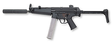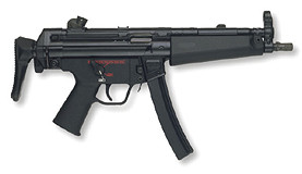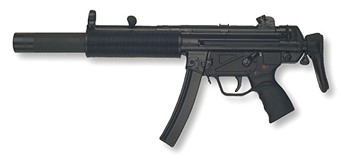 | MP5 submachine gun Heckler & Koch MP5 submachine guns employ the same delayed blowback operated roller-locked bolt system found in the famous HK G3 Automatic Rifle. All the elements of HK excellence; reliability, ease of handling, simple maintenance, and safety are highlighted on the MP5. Firing from the closed-bolt position during all modes of fire makes MP5 submachine guns extremely accurate and controllable. Used by military and law enforcement units in more than fifty nations, the MP5 is firmly established as the worlds preeminent submachine gun. Over 120 variants of the HK MP5 submachine gun are available to address the widest range of tactical requirements. A selection of optional trigger groups allow for single fire only, full automatic, 2-round, and 3-round burst options. The weapons unique modular design and a variety of optional buttstocks, forearms, sight mounts, and other accessories gives the MP5 extraordinary flexibility to meet most any mission requirement. |