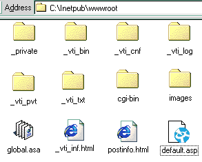 already an ASP file in the directory named "default.asp". This forms part of the PWS default web page. If you click "Start > Run" type in http://localhost/default.asp and click OK, this default page will open in your web browser. |