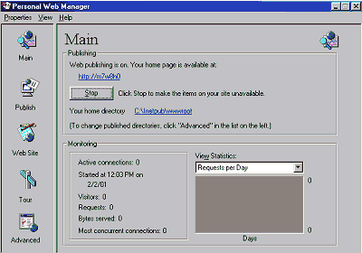 Using PWS: Double clicking on the PWS icon in the "Quick Launch" taskbar (bottom right of your screen near the clock) will bring up the "Personal Web Manager" window (fig 1). |