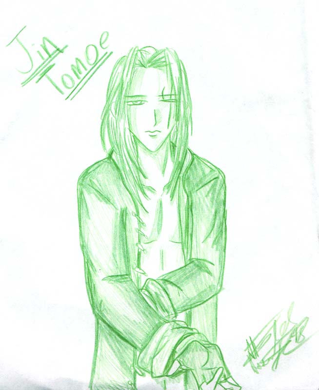 | This is my character Jin Tomoe. I did his all in a green hard lead pencil crayon.