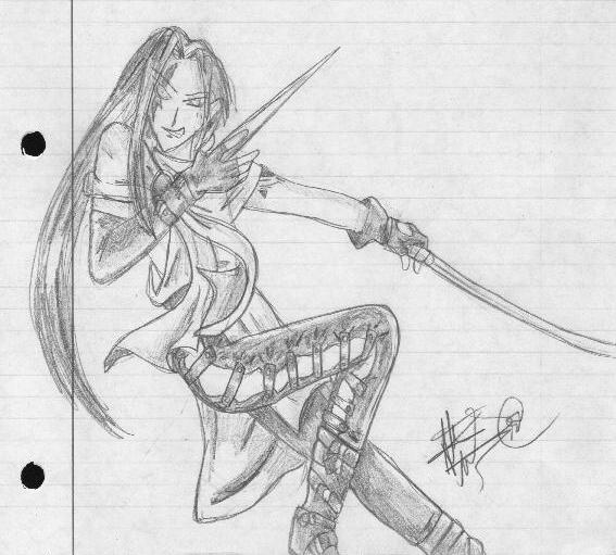 | This is what happens when you get bored during a History Class. I'm proud of this pic and its on lined paper. ^^; This was done in pencil.