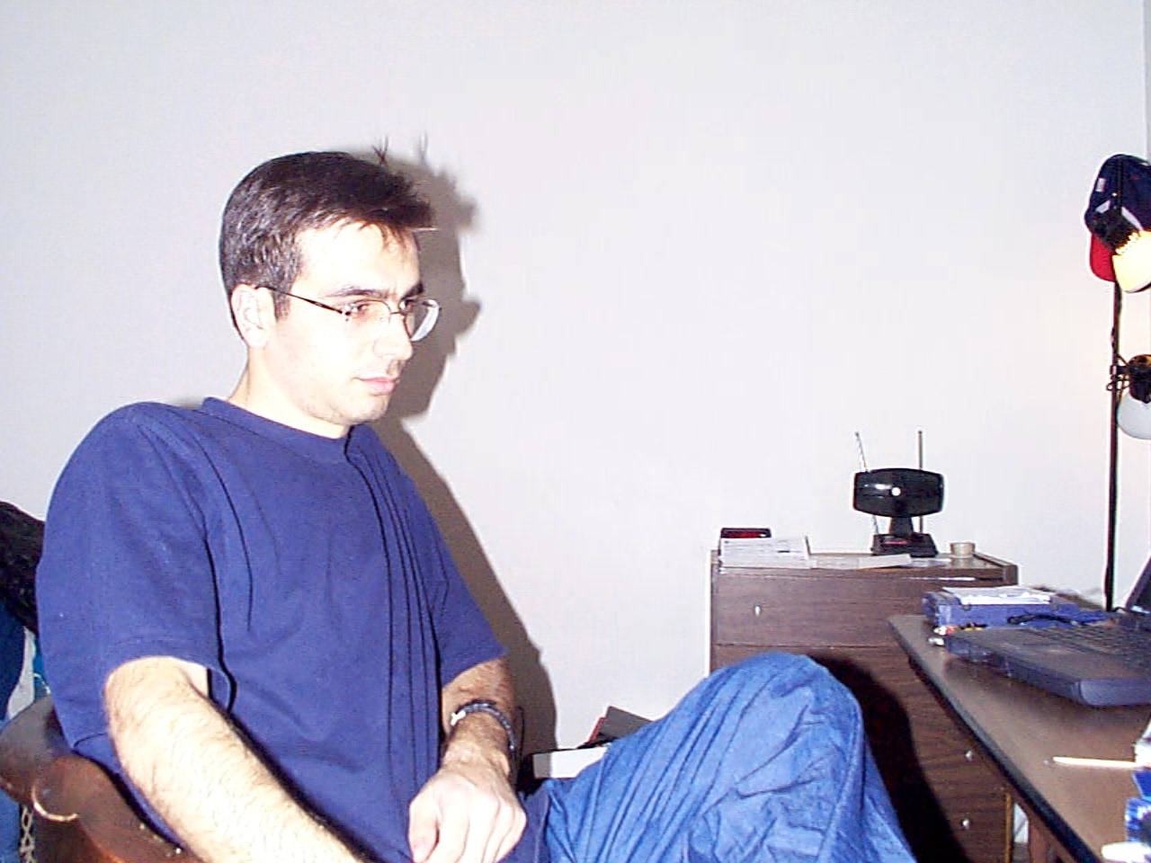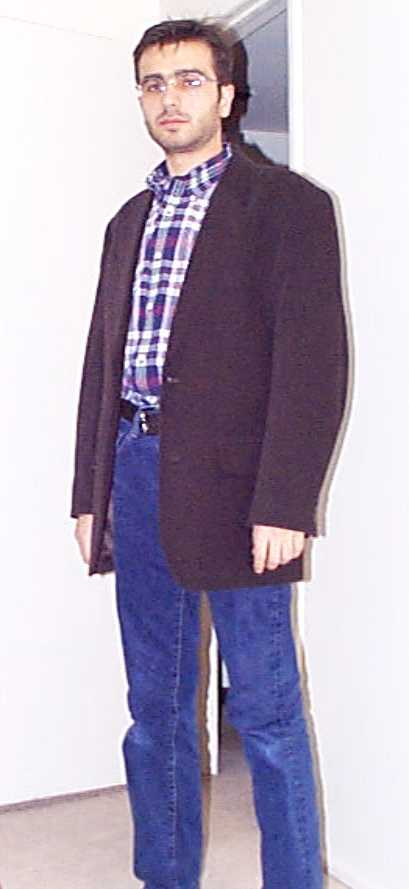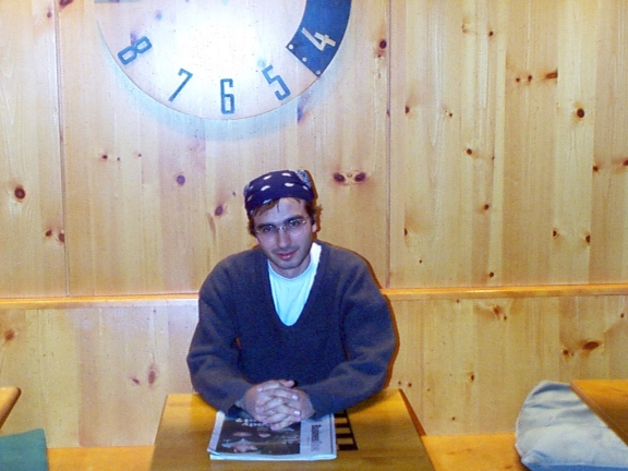 In the third picture, I did not have anything on my right ear. It is just a reflection of the flash light. Fourth picture!? Are you curious? Why? Aha! `coz of the woman?? She is not my g'f. She is just a staff in the cafe shop. While we were taking the pictures, she jumped in by saying "Hey! How come you can take pictures without a staff?" and we said "O.K. Come on in!". That's all folks!