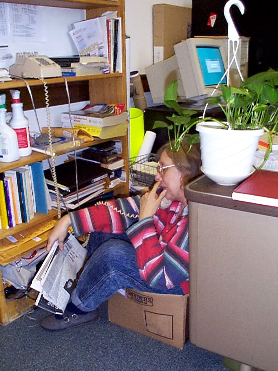 Here is my supervisor at the library. She is in a box :)