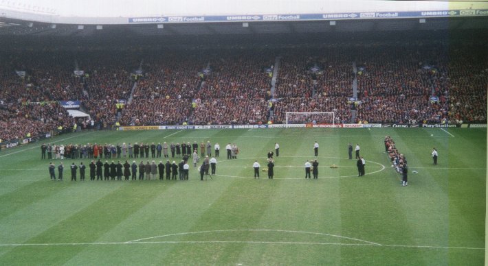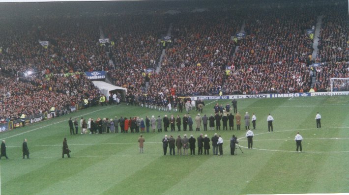 Sir Bobby Charlton lays flowers in tribute of the people who died.