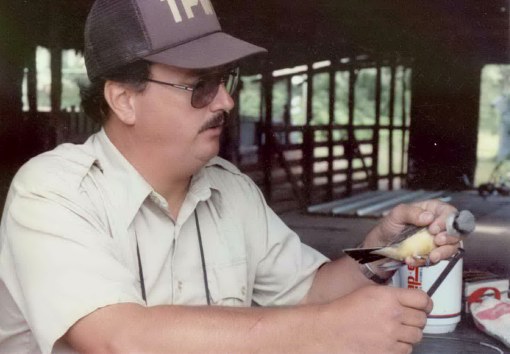 ![]() Kelly Bryan has been a close friend and a sometime research collaborator for nearly 30 years. Here he is in about 1991 measuring a Western Kingbird prior to banding it. At the time he was Superintendent of Kickapoo Caverns State Natural Area near Brackettville. He recently retired as head parks biologist for west Texas. He is one of Texas' finest naturalists and conservationists, and is now doing baseline grassland bird inventories for the National Park Service in west Texas, studying migration in the Guadalupe Mountains, and beginning preparations for ornithological expeditions to Peru for Louisiana State University.