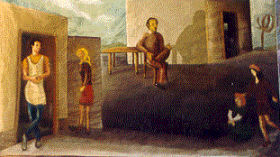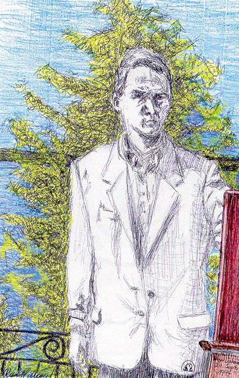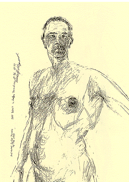 North Bay, Ontario, Canada, 1994 Photo taken by a prof. Photographer. LEFT: New Liskeard, Ontario, Canada, 1994 Selfportrait with Pen. Original size: ca. 35 x 60 cm. |