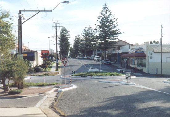 Looking up Grange road. There are a few little shops, take aways and a post office. And there is also one of those "wife shops", where wifes bring their hand made, silk painted scarfs for sale and in return they buy a cover for the tea pot (hand made by another wife). That way everybody gets to buy something and sell something. These shops are very good.
