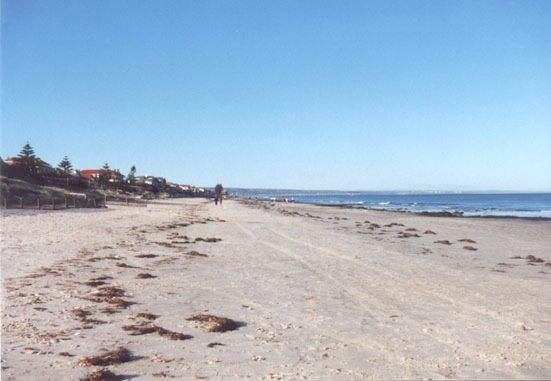 The view along the beach to the south. Way in the back is the Henley jetty. Henley is the next bigger suburb with a few nice restaurants right at the seafront.