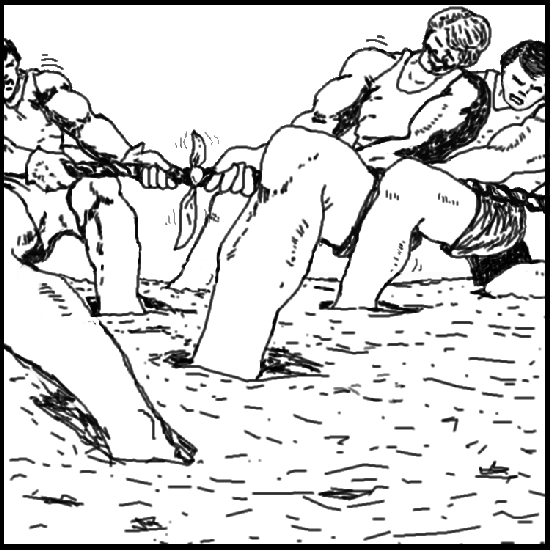 One of the things I like to do is draw. I have drawn a picture for you. You can look at it, and if you like it you can print it out on your printer, if your folks say it's OK. Then you can color it in. It's a picture of strong men having a tug-of-war.