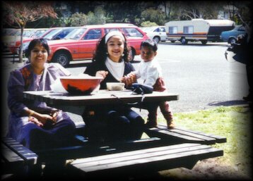 That is my parents...on their holiday in Melbourne, Australia....Left to Right: Shantha (Sister's friend), Mom, Kasturi (Sister's friend), Dad..