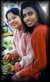 My mom is a vegetable lover as seen here....with my sister's friend, Kasturi...