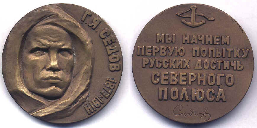 Desk medal Sedov Arctic researcher. Participant to expeditions to the north pole. 1877-1914.