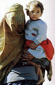 On September 27th, after fierce fighting Taliban Islamic fundamentalist took control of the capital, Kabul. They have now declared Afghanistan a completely Islamic country. And they of course enforce strict laws wherever the size controls. Most of all the women suffer. They've been ordered to wear a full veil and cover their faces in public. A woman is not allowed outside her home without a man, there for widows and women with no brother of father are now dying of starvation because they can't leave their home for work of food shopping.
