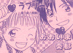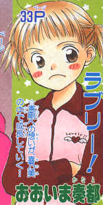 Ribon Original December 2000 Cover(Full-size) I really loved this story, it's going in my translation list. It kind of reminded me of Kimi no Ticket but the characters' personalities are totally different. Kinomi is a seventh-grader who likes Kengou. They're both on the basketball team. They got to be friends one time when Kinomi was complaining during practice about how hard it was, and how she might quit. Kengou started lecturing her about just having fun and trying her best, and Kinomi thought he was a bit weird, but noticed he was kind of cute. Then he told her she was cuter when she smiled, and Kinomi fell for him right then. VERY cute, why can I never think of any other adjectives!!? ![]() |
