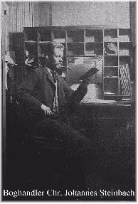 Midt: Min oldefar Chr. Johannes Steinbach i sin boghandel på Vesterbrogade nr. 10 i København, foto ca. 1895.