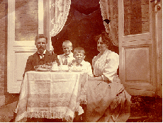 T.h.: Chr. Johannes Steinbach og hustruMarie Steinbach (f. Jagd Jensen) med børnene Axel og Robert (min morfar til højre). Foto ca. 1908