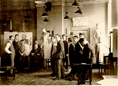 Robert Steinbach (min morfar, han står ydertst t.v.) på Kunstakademiets malerskole, Charlottenborg på kgs. Nytorv i København. Foto fra ca. 1925