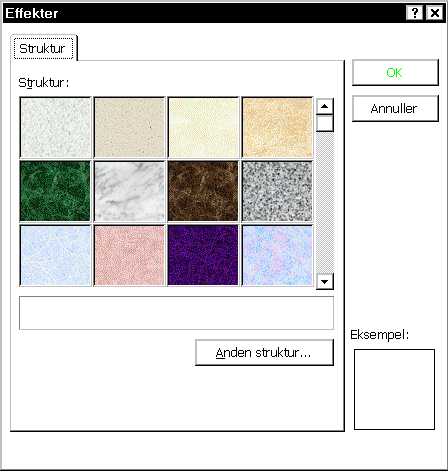 Vælg en du kan lide evt. et billede fra din harddisk (kilk på anden struktur) og få et resultat som herunder :