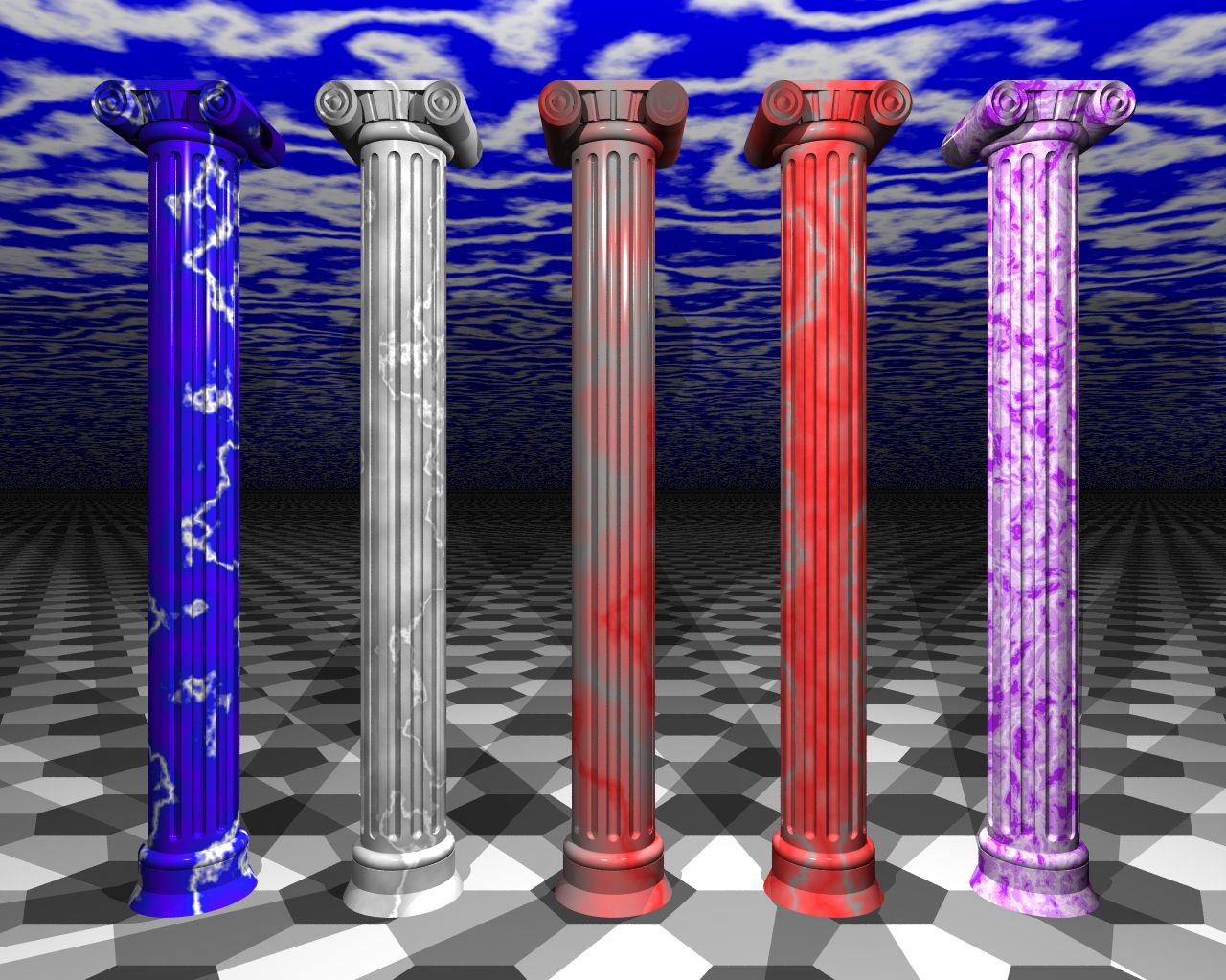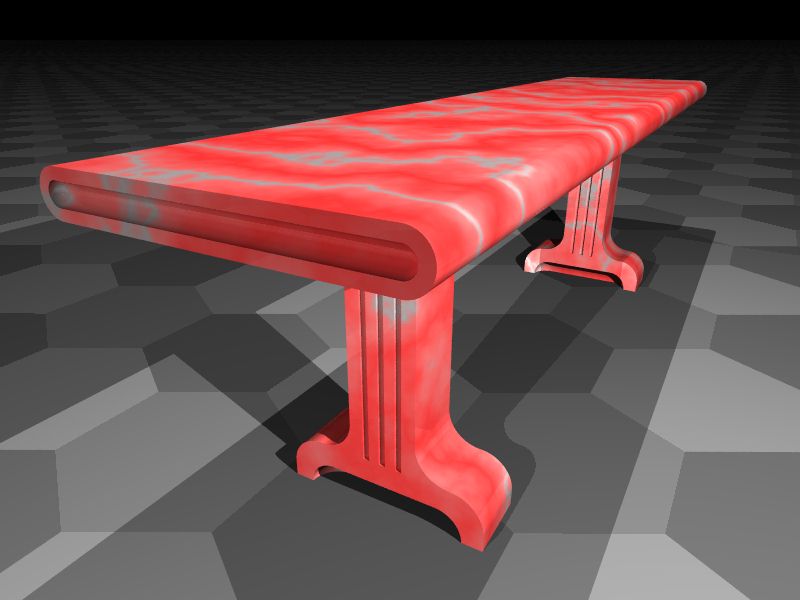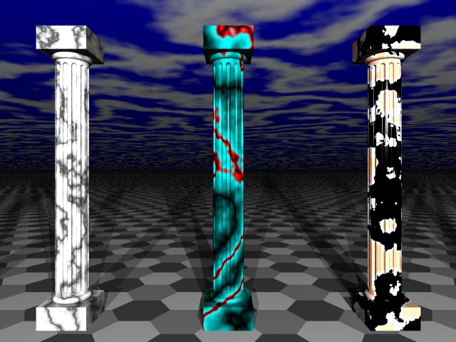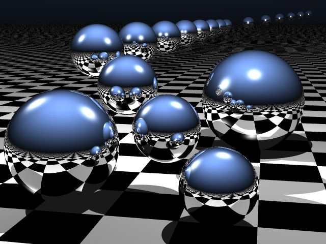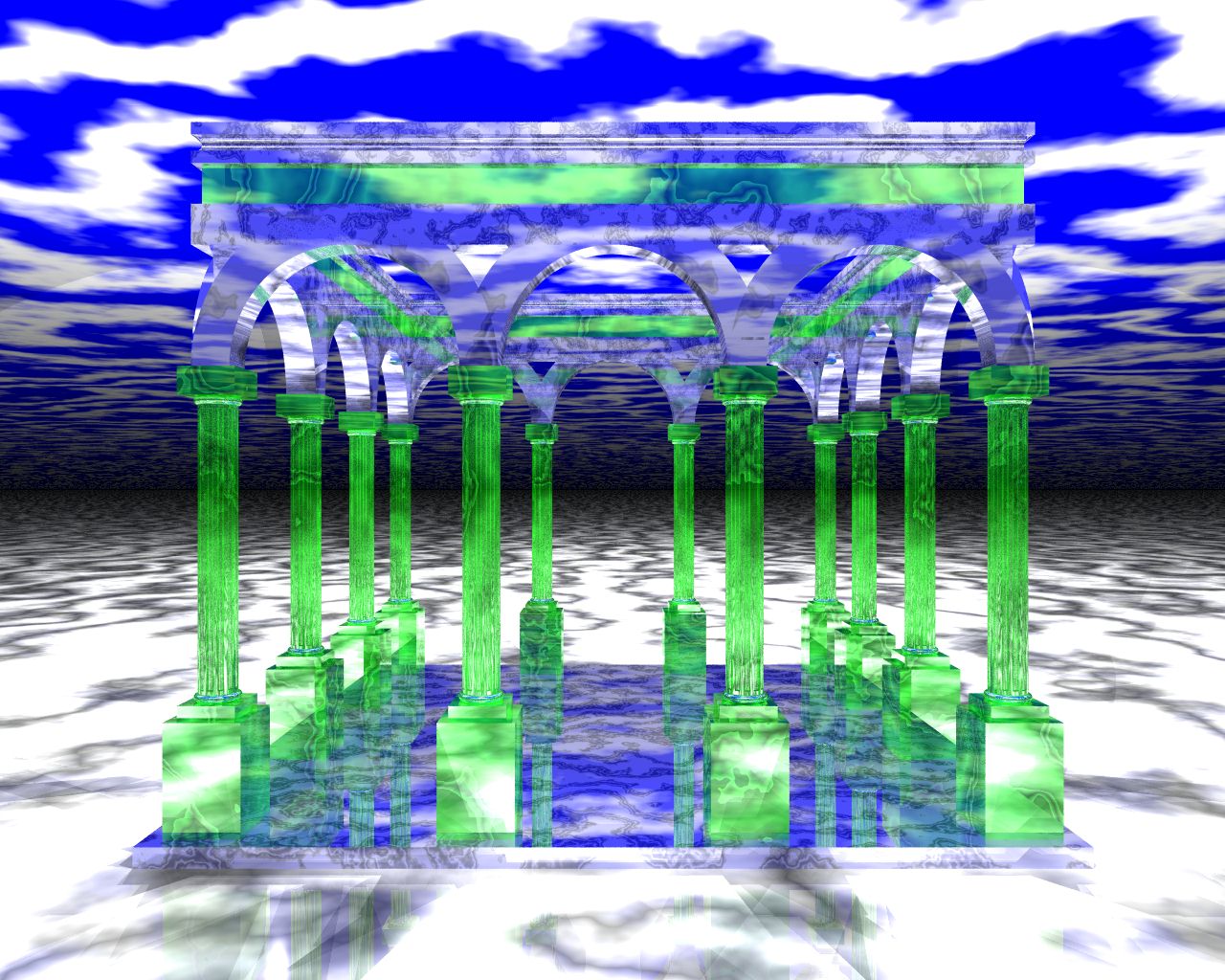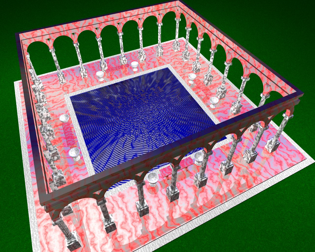 All of these images I created using a program called POV-Ray...the incredibly powerfull and FREE raytracer. The images are listed in roughly the order that I generated them as I was learning to use POV-Ray. All images are JPG or GIF format. Bear in mind that POV-Ray generates images in BMP format so the original files are much larger. There is some image degradation as a result of converting from BMP to JPG. For most images you have a choice of 640x480, 800x600, or 1280x1024 resolution and the file size is listed to give you some idea of the download time.