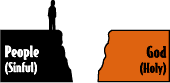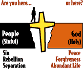 On our own, theres no way we can attain the perfection needed to bridge the gap to God. Through the ages, individuals have tried many ways...without success. Good works wont do it...or religion...or money...or morality...or philosophy... There is a way that seems right to a man, but in the end it leads to death. (Proverbs 14:12) Step 3 Jesus Christ is the only answer to this problem. He died on the cross and rose from the grave, paying the penalty for our sin and bridging the gap between God and people. For Christ died for sins once for all, the righteous for the