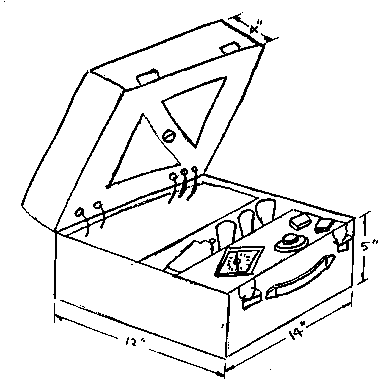 | Burgoyne portable radio, 4 valves, RF amplifier, reacting detector, 2 audio amplifiers, frame aerial in lid, balanced armature loudspeaker in the lid, battery compartment. Probably made in England as components are from English manufacturers. Controls; LW-off-MW, concentric ganged and fine tuning, reaction. Wires for internal GB-6V, GB-3V, HT-GB+, HT+60V, HT+108V, wires for external 2V LT. It is in good condition and working well, although tuning a station in properly can be "fun". |
