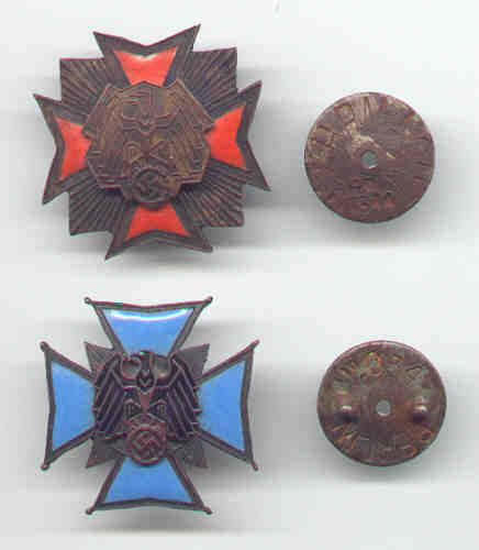 Top: A crude travesty (with enamel!) of the so-called Condor Legion Cross; the disc is marked, of course, CONDOR LEGION.