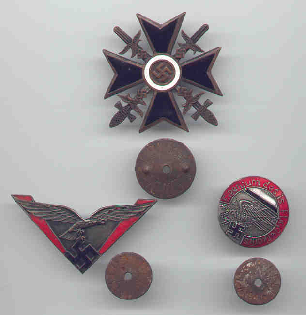 Bottom left: A fantastic "Luftwaffe badge", the disc marked LUFTWAFFE.