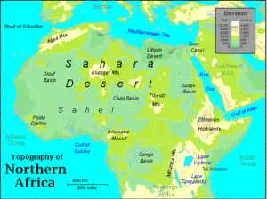 northward for nearly 6.5 thousands km from central mountainous Africa to the