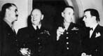 A few minutes before my command performance for General Hap Arnold, Commanding General Army Air Forces, at Bolling Field on October 11, 1944, I had a moment of relaxation with some of the General's colleagues who were in the audience that night: (left to right) Lt. General Joseph T. McNarney; Air Marshal Sir William L. Welch, RAF; and Lt. General Barney Giles, Chief of Air Staff, Army Air Forces.