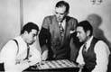 At New York's famous "21" Club in 1955, I took on ten "Teeko" players simultaneously and won all games. Seven of my opponents are shown here: Steve Allen, Larry Evans, Frances Langford, John Crawford, Jinx Falkenberg, Walter Slezak, and Judy Holliday.