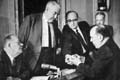 During the Senate Investigation Subcommittee hearings in Washington in August 1961, I was asked to demonstrate the "Scarne Riffle" for detecting marked cards. Here I am doing so for Senators Karl Mundt (R., S.D.), Sam Ervin (D., S.C.), Chairman John McClellan (D., Ark.), and Subcommittee Counsel Jerome Adlerman.