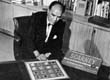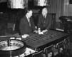 In this picture I'm demonstrating a controlled shot with a pair of honest dice for John H. Winn, inventor of the bank-crap layout, at a party celebrating the publication of my first book, Scarne on Dice, in 1945.