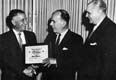 1965, and I receive the Citizen of the Year award from the Detective Crime Clinic of New York, New Jersey, and Connecticut. Mayor Louis Battaglia of my home town, Fairview, N. J., makes the presentation as New York State Police Captain Robert Herbstman witnesses.
