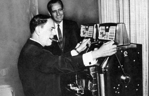 "Rhythming" two slot machines at one time at the Bonaire Hotel Casino in the Netherlands Antilles, as Bud Sweet, the manager, looks on to be convinced that I can beat the machines.