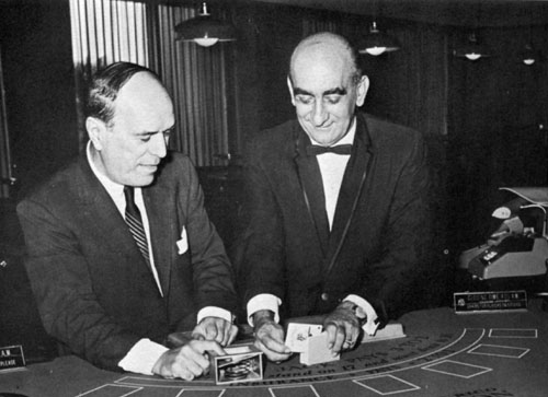 Another consultant job was with the Puerto Rico Sheraton Hotel Casino in San Juan. Here, in 1963, I'm instructing Freddie Bistani, the manager, in the use of my anti-cheating Blackjack dealing box.