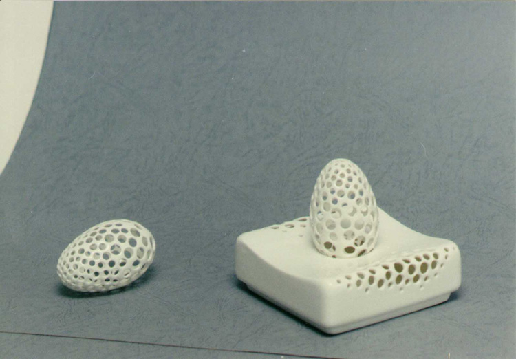 Яйцо пасхальное, прорезное; вазочка прорезная, белая. |