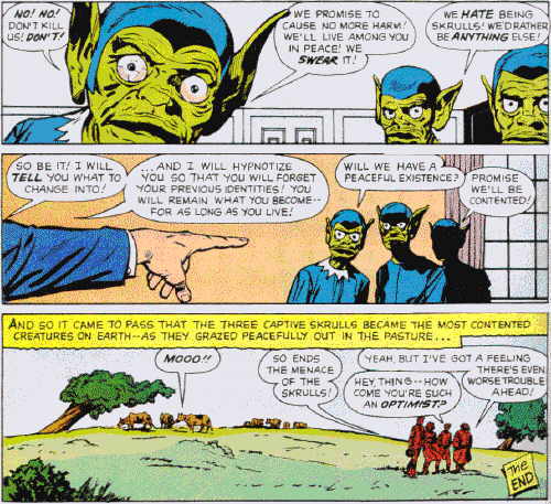 Oh, and at the end Reed hypnotises the fourcount em again, no loose ends this timeSkrull agents into... wait for it...