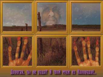 Prompt for the screen. 800x600. This my person and hands laying on the scanner. Behind a window - landscape of Colorado. The signature: dear, you is not glad? I your husband from Colorado!.. In Russian it in a rhyme. | ||||||||||||||||