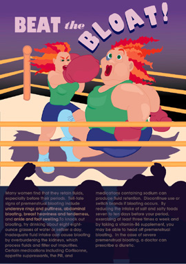 Mock illustration for magazine mini-article on preventing premenstrual bloating. Created in Adobe Illustrator. c