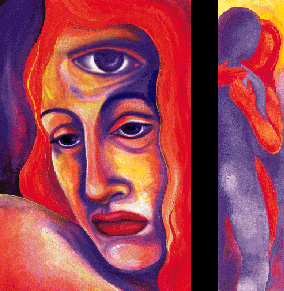 Acrylic and colored pencil on paper in two pieces. Appeared in NJAADC Expressions Show at the Jaquin Studio, St. Louis, June 1996. c
