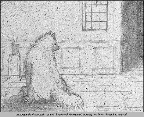 floorboards. "It won't be above the horizon till morning, you know", he said,
