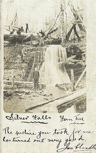 | Silver Falls, looking rather anaemic in this photo which was sent to someone c/o - my family atThe Springs in 1906. |