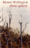 Winter: the Wellington RangeA low magnetic hum, beyond hearing. I sense it around the Mountain, and sense it more keenly when I am alone. Back here where people do not come, it is deep and strange, and it seems impossible that the tourist road is only an hour or two away. It is a place of low, brown and tough grass; bulging, voluptuous green cushion-plants , the glossy, snow-rimed spikes of Pandanis; chill, brilliant streams, damp and rotting fallen logs, slimy and delicious to the touch. There are vast surreal cities of grey and monolithic dolerite boulders, bearded with ice, green moss and orange lichen. There are forests of white coral: skeletal snow-gums killed decades ago by fire, now they are frozen moments of bone lightning, forking upwards from the mountain, telegraphing its endless hum to the snowy sky. It is silent, and when snow looms in grey acres, crossing and swallowing the emptiness of Thark Ridge, or coccooning the bleak crags of Collin�s Bonnet the silence itself is deadened and hushed. Once in July I felt the mountain noticing me. There is a wide, empty plain of creeks and button-grass which leads to Mount Connection. As I approached it from within a patch of scrub and low gums I felt ancient eyes all around me. I had met the thinking of the mountain, or the thinking thing that roams across it. For a long time it regarded me, then it went on. In those minutes the low hum was almost a shout. One other time it found me unexpectedly, on a full-moon evening among the great, pale boulders, and I had to leave, quickly. Great grandfather was a ranger on the mountain, hauling huge blocks of ice down an insanely steep mudslide of a trail on his acrobatic horse. Grandfather talks about years between the wars when he camped up there for days at a time. For my part I lived five damp years in the dark green womb of Fern Tree, snuggled against the mountain�s side, soothed by the fierce night wind which wrenched trees apart, and hearing, even in my sleep, the humming in the silence. |
