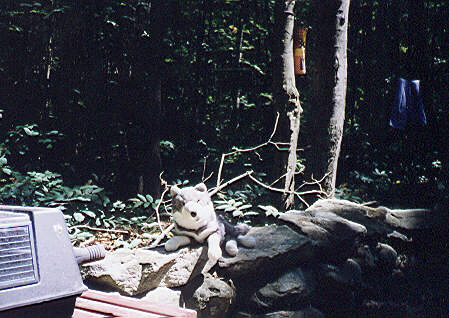 And so finally the long summer day died (coming from winter to summer solstice is a rather lovely experience it itself, which I highly recommend. Having done the reverse, I highly dis-recommend that), and gave way to a warm night. I sat on the porch of Alex's cabin-thingie, enclosed by fly-screen (a squirrel was later to penetrate this and cause havoc, while we were up in New Hampshire buying plush). I listened to the sounds of Americans enjoying their summer holidays. It was a sound which was both familiar and alien; comforting and remarkable. I was allowed to raid the eski (or whatever you call it over there) for one of Alex's dad's lite beers, and sitting there, with the big travelling over, and myself finally arrived; 36 hours awake and completely un-jet-lagged, I had my first and only bout of 'what the hell am I doing here?'