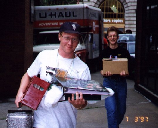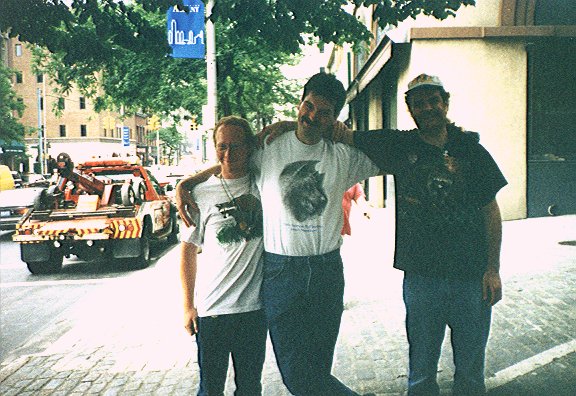 Flep, Alex and I (and apparently Xydexx, judging from a photo I have here - though I hadn't met him at the time, and didn�t know who he was) helped bring in materials from the art show from the vans outside the hotel,