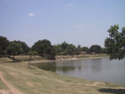 Ainoat asutun n�k�iset rakennukset olivat muutama maja puiden varjossa.