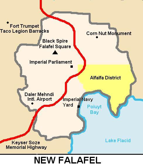 After getting a student loan, Canadian John Gosselin used the money to purchase the former Uganda. This came to be known as the historic Uganda Purchase. After ousting (read: purge) the old government, John proclaimed himself Emperor for life and installed loyal friends in top government positions. In addition to this, Emperor John renamed everything in the country. Alcohol may or may not have been a factor. After his inaugural address, Emperor John hosted the entire nation's population in Falafel Square in his capital to swear allegiance to the Empire and to forfeit all their civil rights. The Emperor's rule is enforced by the Taco Legion, an �lite Division of the Imperial I Can't Believe It's Not Ugandan Army whose role is to act as the Emperor's bodyguard and accompany him wherever he goes, as well as guard his buildings and residences. The Emperor also has the secret police at his disposal.