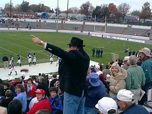 HERE ARE SOME VERY CANDID PHOTOS OF OUR BLUES BROTHERS THEME FROM LAST YEAR'S GAMES WITH THE DELAWARE BLUE HENS AND LEHIGH UNIVERSITY. AS YOU CAN SEE, BOTH WERE GREAT WEEKENDS AT UR STADIUM AND WE HAD A GREAT TIME EVEN THOUGH OUR SPIDERS WERE DEFEATED IN THE LEHIGH PLAYOFF GAME. IT WAS IN THE LEHIGH-UR GAME THAT A PROMINENT LEHIGH NEWSPAPER WOULD LATER CLAIM THAT UR FANS LACKED "EMOTION" AND "SCHOOL SPIRIT" AND THAT WOULD LEAD TO THE DEMISE OF THE SPIDERS AS THE GAME WORE ON! I HATE TO ADMIT IT, BUT THAT REPORTER WAS ABSOLUTELY CORRECT IN HIS ANALYSIS OF OUR FAN SUPPORT! wE ALUMNI KAZOO BAND MEMBERS HAVE BEEN DISAPPOINTED ON MANY OCCASIONS BY THE GENERAL LACK OF FAN ENTHUSIASM AT OUR HOME GAMES AND WE SOLEMNLY VOW THAT IT SHALL NEVER HAPPEN AGAIN AT UR STADIUM! THE SPIDERS MEED TO HEAR FROM OUR FANS BECAUSE THEY HAVE GIVEN US ALOT TO BE PROUD OF AND WE ARE CONFIDENT THEY ARE CLOSE TO A NATIONAL CHAMPIONSHIP. LET'S ALL DO OUR PART TO PUSH THEM TOWARD THAT GOAL!